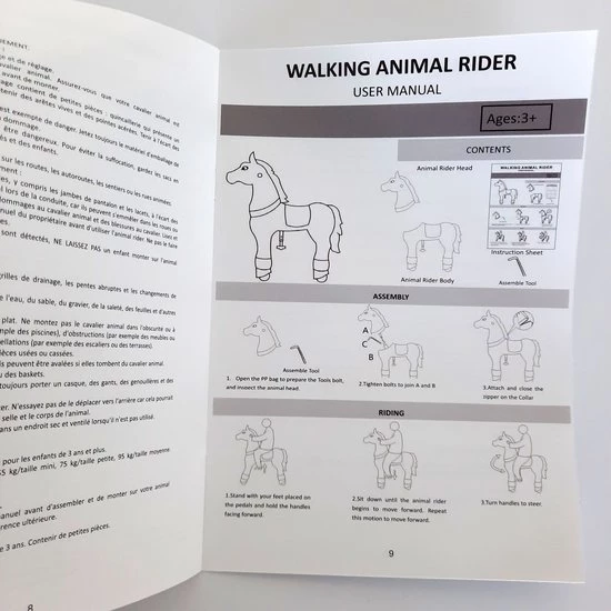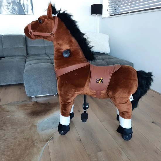 Topkwaliteit rijdend hobbelpaard. Met meertalige handleiding. Het hoofd moet je met 1 boutje vastdraaien en de ritssluiting dichtdoen. Daarna direct speelklaar. Kinderen zijn dol op dit (animal riding) paarden speelgoed, want het is een grote paarden knuffel en tegelijkertijd een rijpaard.