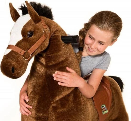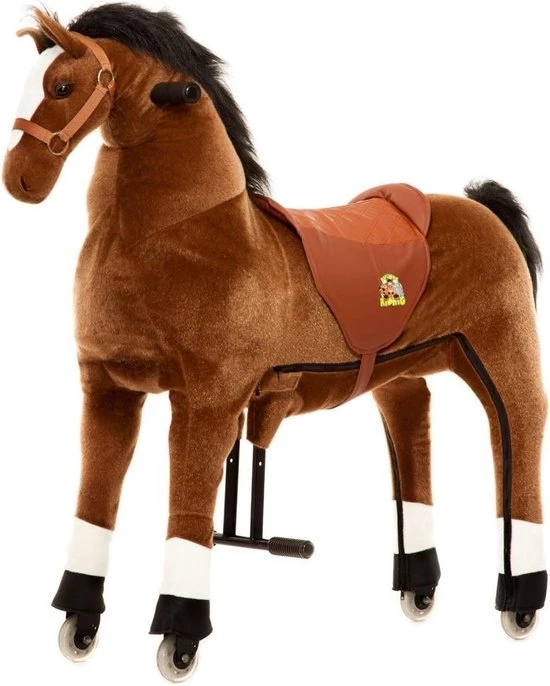 Het bruine paard Amadeus in de maat X-Large is net zo groot als een echt paardje. Je kunt op het zadel zitten en als je gaat bewegen gaat het paard vooruit. Ook kun je het paard naar rechts en naar links sturen. Het pedaal is verstelbaar in 3 standen. Het zadel is afneembaar wat het speelplezier verhoogd. Ervaar het zelf en bestel snel!
