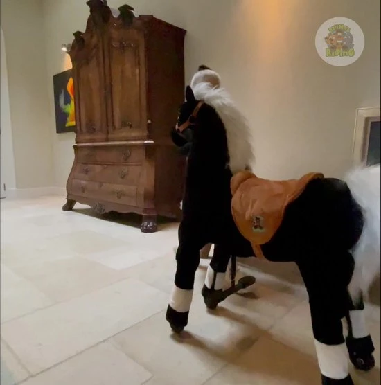 Het zwarte paard Maharadscha in de maat Small is net zo groot als een echt paardje. Je kunt op het zadel zitten en als je gaat bewegen gaat het paard vooruit. Ook kun je het paard naar rechts en naar links sturen. Het pedaal is in 3 standen verstelbaar zodat ze er heel lang mee kunnen spelen. Afneembaar zadel voor meer speelplezier.