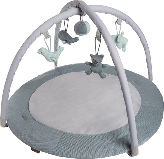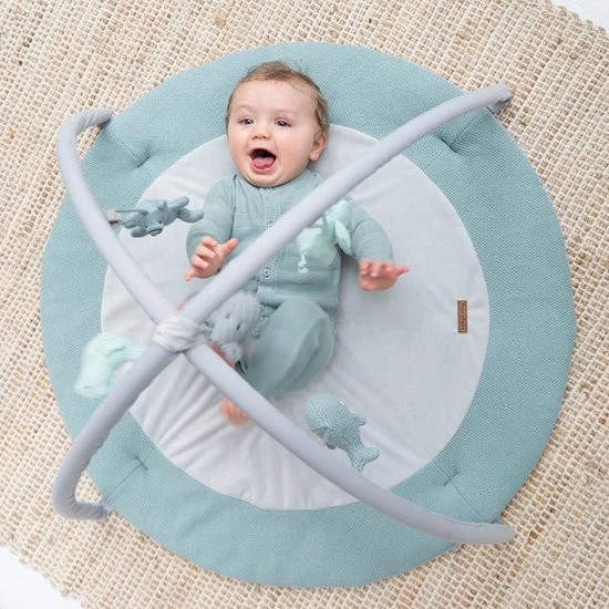 Het speelkleed bestaat uit een ronde speelmat en twee (verwijderbare) bogen die je eenvoudig kunt vastklikken. Het zachte breiwerk en in het middenstuk een nog zachtere teddystof, zorgen ervoor dat je kindje comfortabel en zacht ligt. De bekende knuffels uit de collectie hangen in mini-uitvoering aan de twee speelbogen. Veel speelplezier gegarandeerd. Naast de kleur stonegreen/mint/wit is dit speelkleed verkrijgbaar in diverse andere kleuren.