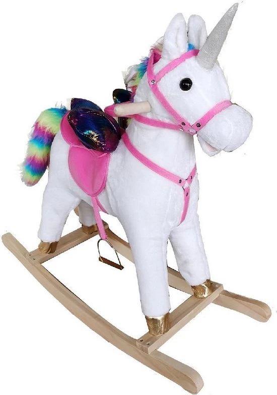 Basic Pluche Eenhoorn Hobbelpaard Met Geluid 68x29x73 Cm