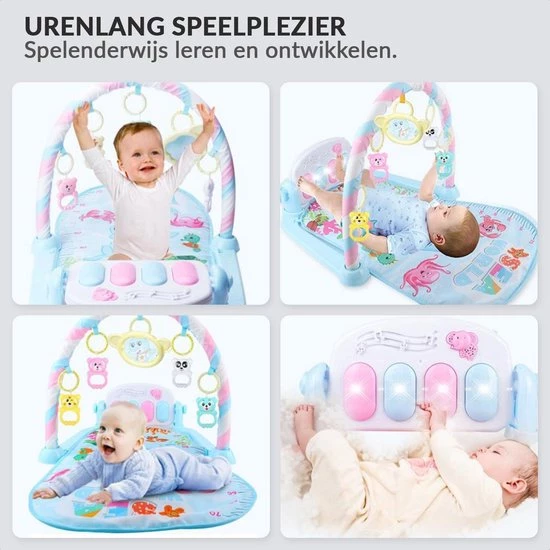 Dit 3 in 1 baby speelkleed met boog heeft verschillende functies voor het prikkelen van de zintuigen van uw kind. Uw kind leert om te voelen, zien, luisteren en de baby ontwikkelt zelfs zijn ledematen tijdens het spelen. Speel samen en leer uw kind de juiste zintuigen te gebruiken tijdens het spelen op de speelmat met dierenvrienden en beleef samen een avontuur vol speelplezier. Uw kind kan op drie verschillende manieren spelen: liggend op het ruggetje, liggend op het buikje en zittend om met de piano te spelen.