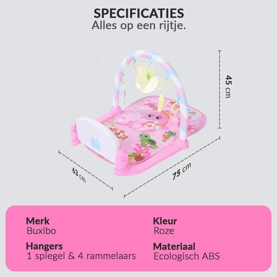 De Buxibo Baby Piano Gym is een 3-in-1 speelgym voor 3 verschillende posities in de ontwikkeling van baby. Baby’s liggend, zittend of op hun buik gebruik maken van deze babygym. Bovendien is deze speelmat voorzien van een zachte ondergrond waardoor de baby veilig kan spelen en leren kruipen. Een interactieve, veilige speelmat die de zintuigen van jouw kleine spruit prikkelt.