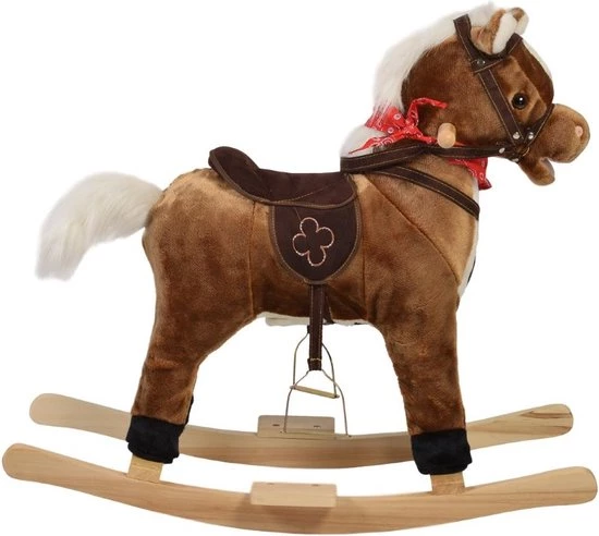 Daarnaast voelt hij heerlijk zacht aan, heeft hij een comfortabel zadel, een stevig houten onderstel en stevige houten handvaten.Ook heeft het hobbelpaardje echte stijgbeugels zodat je kleintje er makkelijk op kan komen.