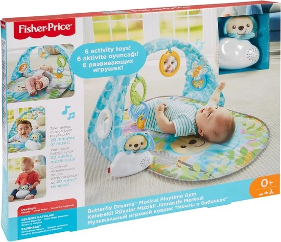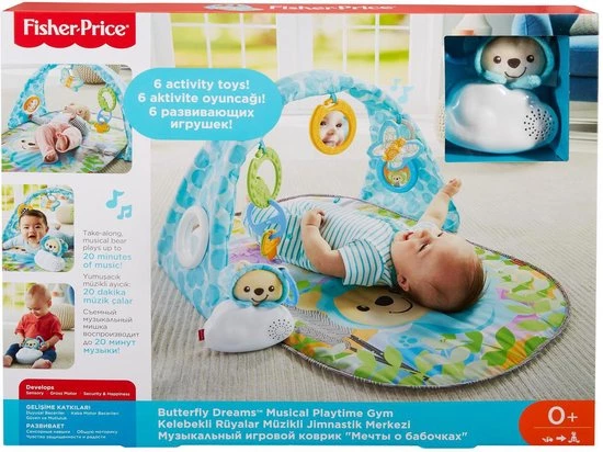 Deze muzikale Vlinderdromen Gym voor baby’s is geschikt voor liggend spelen of op de buik spelen.