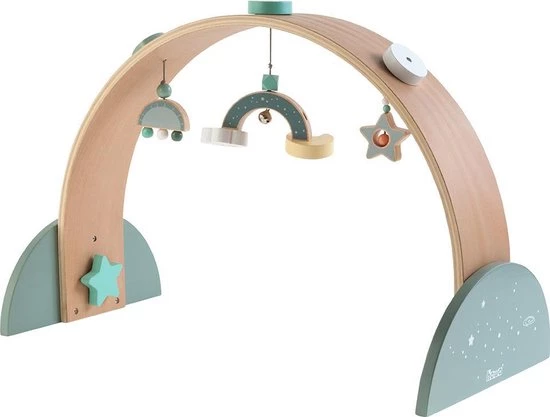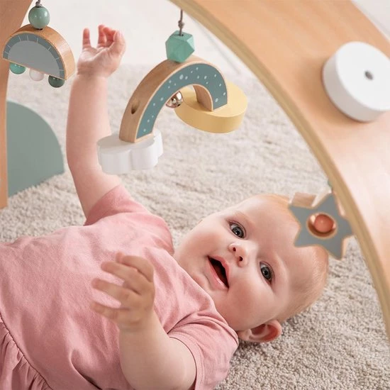 Babygym van hout met liefdevol ontworpen speelvoorzieningen