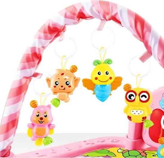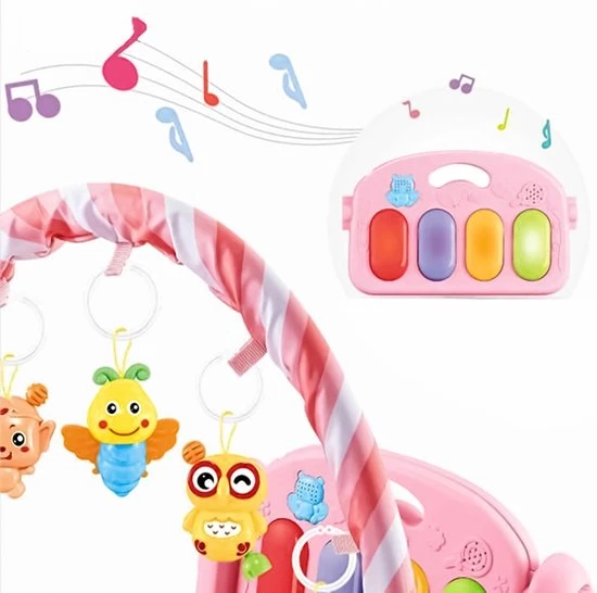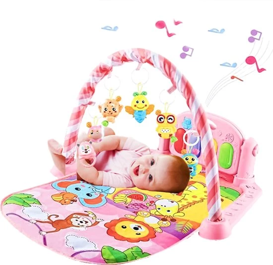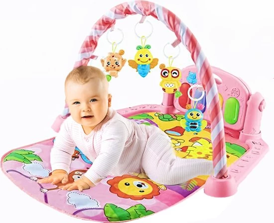 Deze Luxe babygym bevat urenlang speelplezier voor je baby, thuis én onderweg! De draagbare, gewatteerde speelmat is een heerlijke plek om te liggen en te spelen, op de buik te draaien, of zittend te spelen. Om je kleintje bezig te houden bevat het speelkleed een stevige boog met 4 verplaatsbare speeltjes met twee muziekstanden en een spiegeltje. Daarnaast bevat de babygym ook nog een multifunctionele piano voor extra speelplezier. De piano is op verschillende manieren te gebruik. Door de speciale voetenfunctie kan je baby al liggend de piano bedienen en muziek maken. Zodra je baby een zittend houden kan hebben, is het ook mogelijk om de piano met de hand te bedienen. Verder kan de piano verschillende geluidjes maken en muziekjes spelen met een tijdsduur van maximaal 10 minuten. De babygym is het speelgoed waar spelplezier en ontwikkeling samen komen. Zo leveren de diverse kleurrijke activiteiten, muziek, geluidjes en grappige structuren een bijdrage aan het ontwikkelen van de visuele en auditieve tastzintuigen van je baby. De speelmat is erg comfortabel en veilig ingesteld. Ook is het speelkleed makkelijk te verschonen en kan zonder enige problemen de wasmachine in.