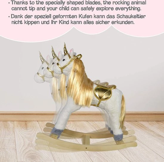 Ons kleine schommelspeelgoed is de perfecte metgezel voor je kind, die van dieren houdt en zijn reis naar de wereld van creatief spel en fantasie. Deze sierlijke harige vriend zal je schattige kleintjes urenlang leerplezier geven. Het eigenlijke hoogtepunt zijn de geluidseffecten, die door een moedige oorknop van je pluche vriend worden gecreëerd. Hüa!