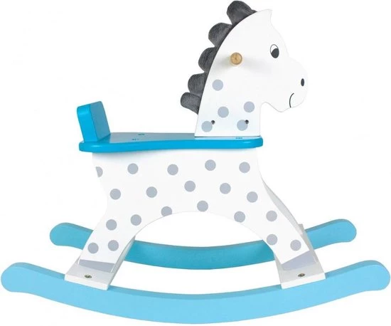 Nog een echt houten schommelpaard, maar dan in trendy hedendaagse kleuren. Deze versie is in wit en blauw.