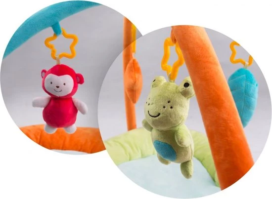 Dankzij de mogelijkheid om speelgoed op te hangen, kun je de uitrusting van de mat eenvoudig aanpassen aan de ontwikkelingsfase en voorkeuren van je baby.