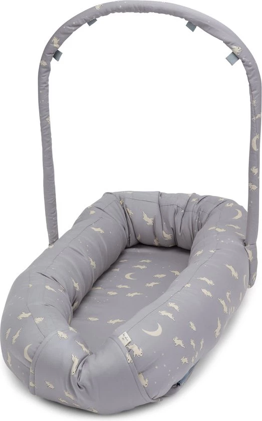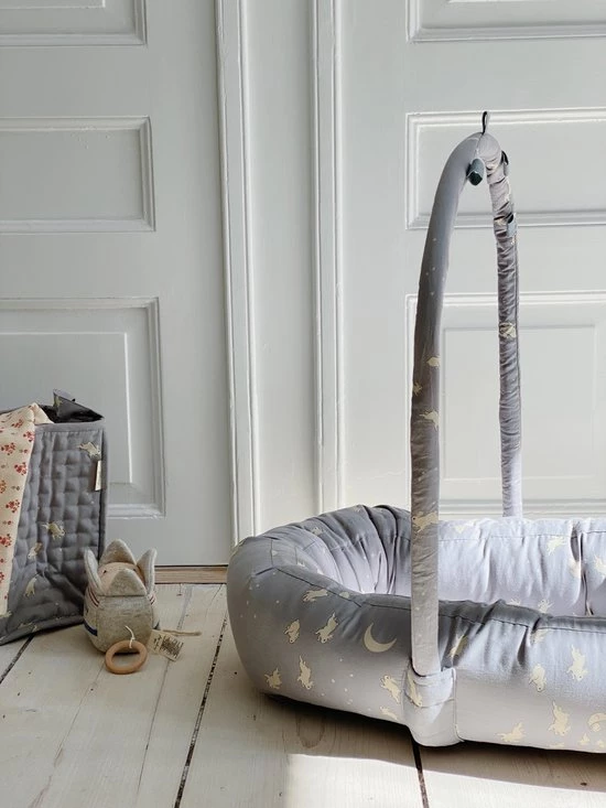 Dit prachtige babynest van Konges Sløjd biedt niet alleen comfort en geborgenheid maar je inimi kan ook lekker spelen met speeltjes die je aan de boog kunt hangen. De handige boog is afneembaar. Je kan er speeltjes aanhangen zodat je kindje er tegen kan stampen of naar kan kijken. Het babynestje is gemaakt van biologisch katoen en is ideaal voor in de wieg, in het ziekenhuis, in de kinderwagen, op het bed of voor de veiligheid op de vloer en op de bank. De mogelijkheden zijn eindeloos.