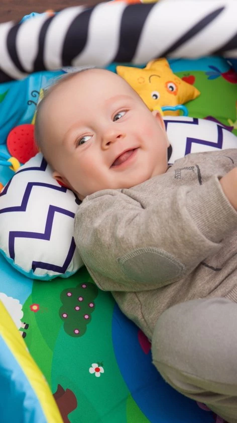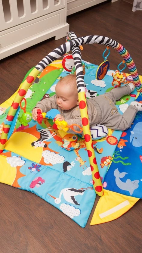 Bij het grijpen naar speelgoed versterkt een kind de spieren, oefent het de juiste grip uit en verbetert het het vermogen om het hoofd in een bepaalde positie te houden.