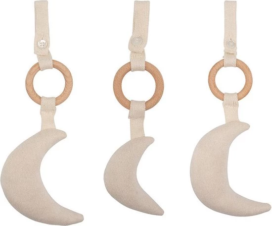 Deze set van Little Indians bestaat uit drie schattige maantjes in verschillende groottes om aan de babygym te hangen. Superleuk en interessant voor je kleintje om aan te voelen en mee te spelen.
