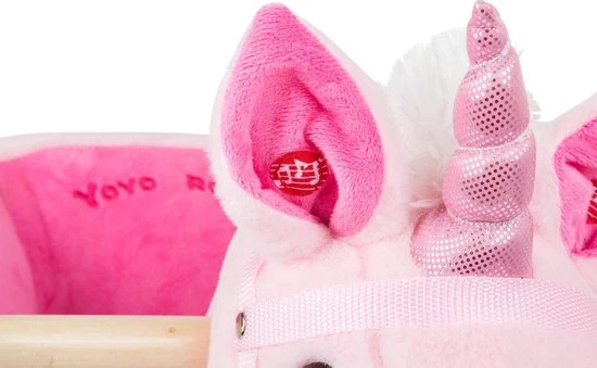 De rit naar avonturenland kan beginnen! Jonge eenhoornliefhebbers kunnen hier lekker op hobbelen. Deze eenhoorn heeft een ergonomische stoel met een vacht. Om deze speciale hobbeleenhoorn in beweging te krijgen, moet de jonge ruiter de houten handvatten vasthouden en heen en weer schommelen. Dit traint vooral de motoriek van kinderen en hun evenwichtsgevoel. Wanneer je op het oor van de eenhoorn drukt, wordt er gehinnikt.