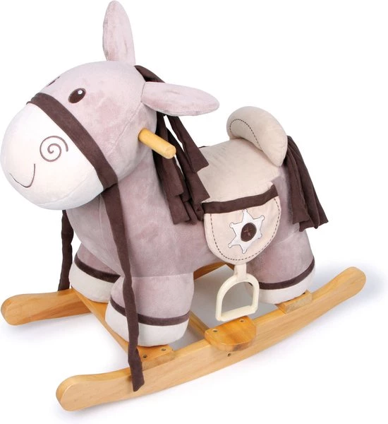 Houten Hobbelpaard Sheriff is lief en voorzien van twee zadeltassen en krakende oren (bij aanraking).