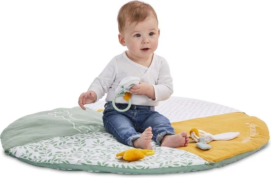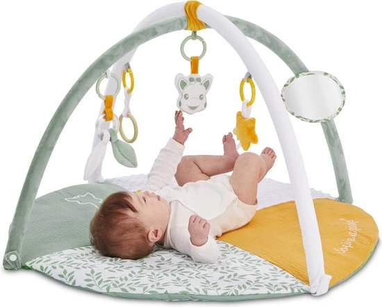 De 2 in hoogte verstelbare bogen maken het mogelijk om de positie van de activiteiten aan te passen zodat de baby wordt aangemoedigd om zijn hoofd te draaien, zijn spieren te versterken en zijn motorische vaardigheden te ontwikkelen. De evolutieve mat zorgt ervoor dat de baby veel plezier beleeft, eerst op zijn rug, vervolgens op zijn buik en ten slotte kan genieten van de comfortabele mat wanneer de baby zit.