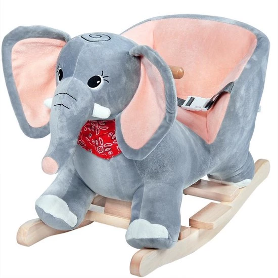 De knuffelbare olifant heeft een houten frame met houten handvaten en is voorzien van een veiligheidsgordel. De stoel is gemaakt van zacht pluche. Als je op het oor van de olifant drukt, worden er leuke geluiden gemaakt.