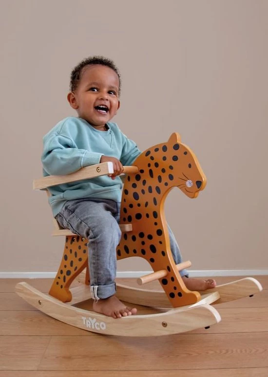 Dit houten Tryco hobbeldier in de vorm van een luipaard zal prachtig staan in de baby- of speelkamer! Het hobbeldier is gemaakt van stevig hout en heeft een gesloten zitje, zodat je kleine er niet snel uit kan vallen. Ook kan je kindje zijn voetjes op de steuntjes leggen.